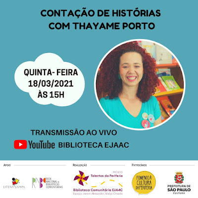 Esta ação é organizada pela Biblioteca Comunitária EJAAC e é uma contrapartida da Lei Emergencial Aldir Blanc, Inciso II da Cidade de São Paulo e do Governo Federal. Conta com o apoio da Associação Amigos do Bairro Chácara Santa Maria, da Rede Literasampa e da Rede Nacional de Bibliotecas Comunitárias. #bibliotecacomunitaria #issomudaomundo #bibliotecaejaac